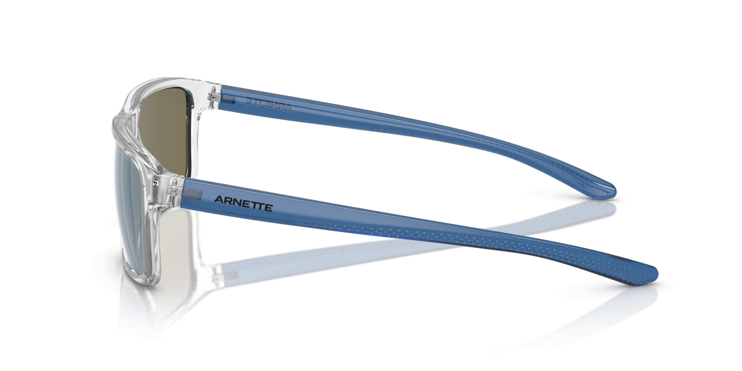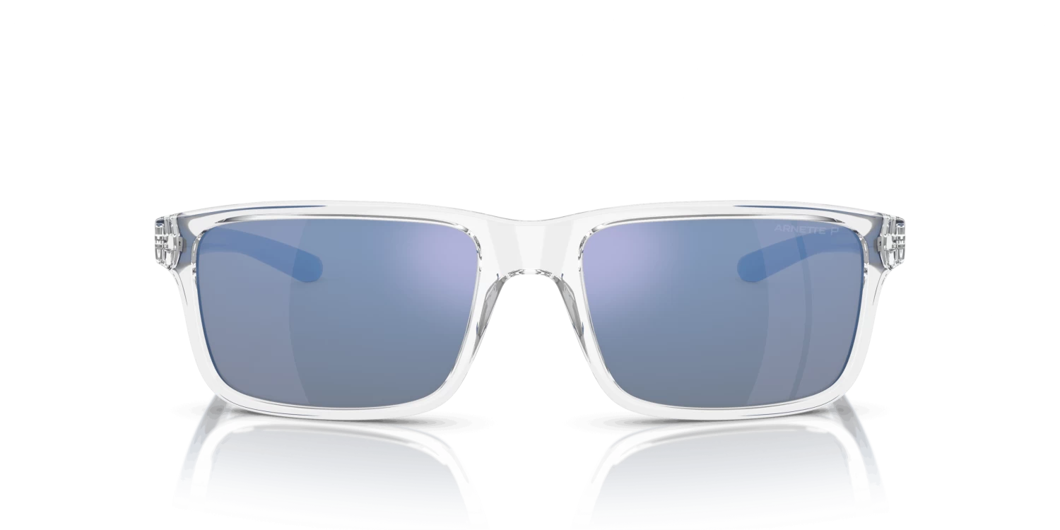 Nieuwe zonnebril nodig? Zoek niet verder! De Arnette Mwamba AN4322 275522 is namelijk onmisbaar in jouw collectie. Dit prachtige heren model is transparant en is gemaakt van kunststof. De blauwe glazen filteren scherp licht en verminderen contrast. Deze zonnebril heeft gepolariseerde glazen met een spiegelcoating. Gepolariseerde glazen verminderen de lichtintensiteit en absorberen een deel van de lichtschitteringen. Gespiegelde glazen reflecteren meer licht en zorgen ervoor dat niemand jouw ogen ziet. De Arnette AN4322 275522 heeft een rechthoekig montuur. Dit past goed bij een ovale of ronde gezichtsvorm. Dit montuur valt klein.