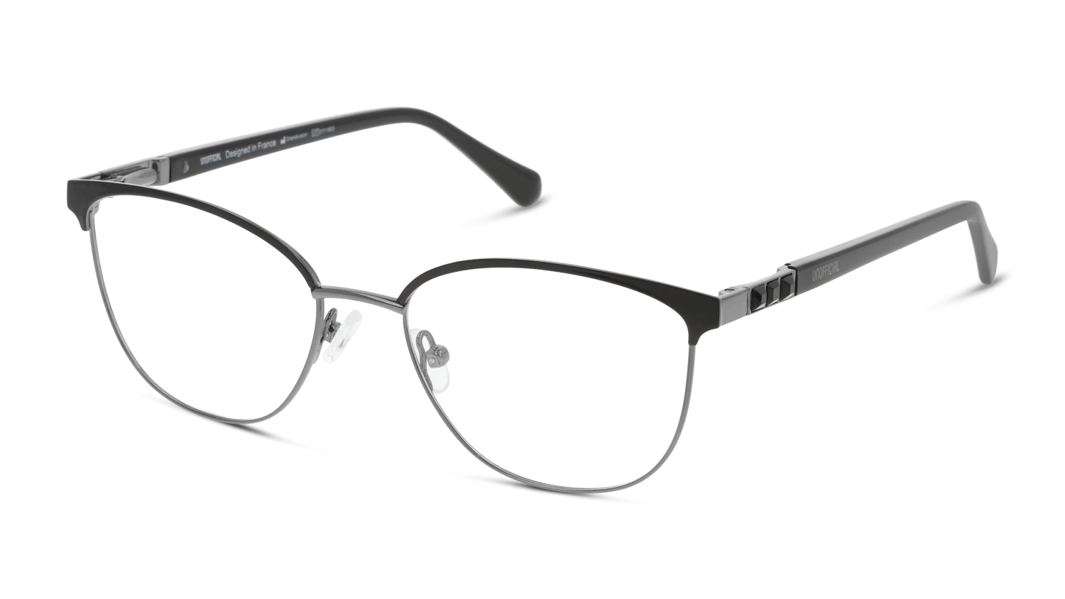 Is het tijd voor een (nieuwe) bril? Misschien is dit wel het montuur dat je zoekt! Deze Unofficial bril is ontworpen voor dames. Hij is zwart met grijs en gemaakt van metaal. De Unofficial UNOF0462 heeft een vierkant montuur. Dit past goed bij een ronde, langwerpige, ovale of hartvormige gezichtsvorm. Voldoet de Unofficial UNOF0462 aan jouw wensen en ligt jouw sterkte tussen -5 en +5? Bestel ‘m dan direct online! Is je sterkte hoger of wil je een multifocale bril? Kom dan langs in één van onze winkels. We staan voor je klaar.